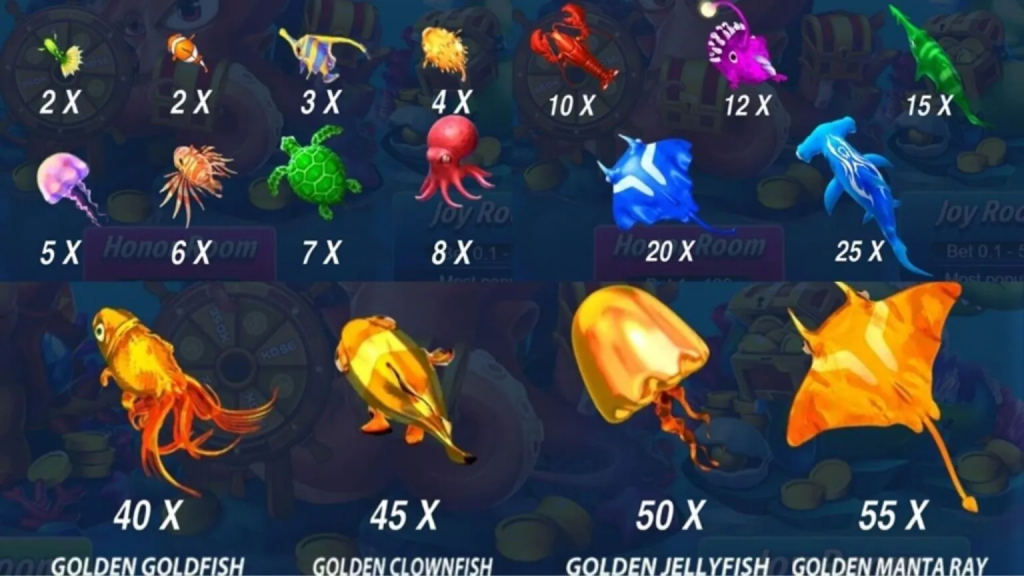 Mega Fishing has three different gaming rooms: the Newbie Room, the Honour Room, and the Joy Room. Each area has multiple bet ranges and payouts to accommodate players with varying tastes and experience levels. The Newbie Room is designed for beginners, while the Honour Room and Joy Room are for more experienced players looking for new challenges.