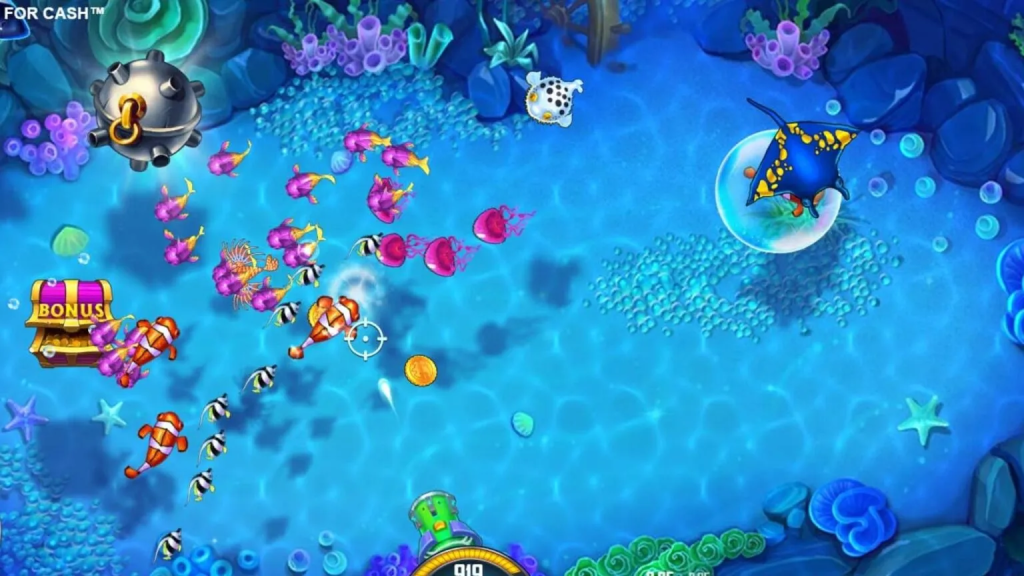 Mega Fishing’s auto-shoot feature allows you to repeatedly fire at fish without manually clicking. Simply hover over the target and let the game’s auto-shoot feature take over.